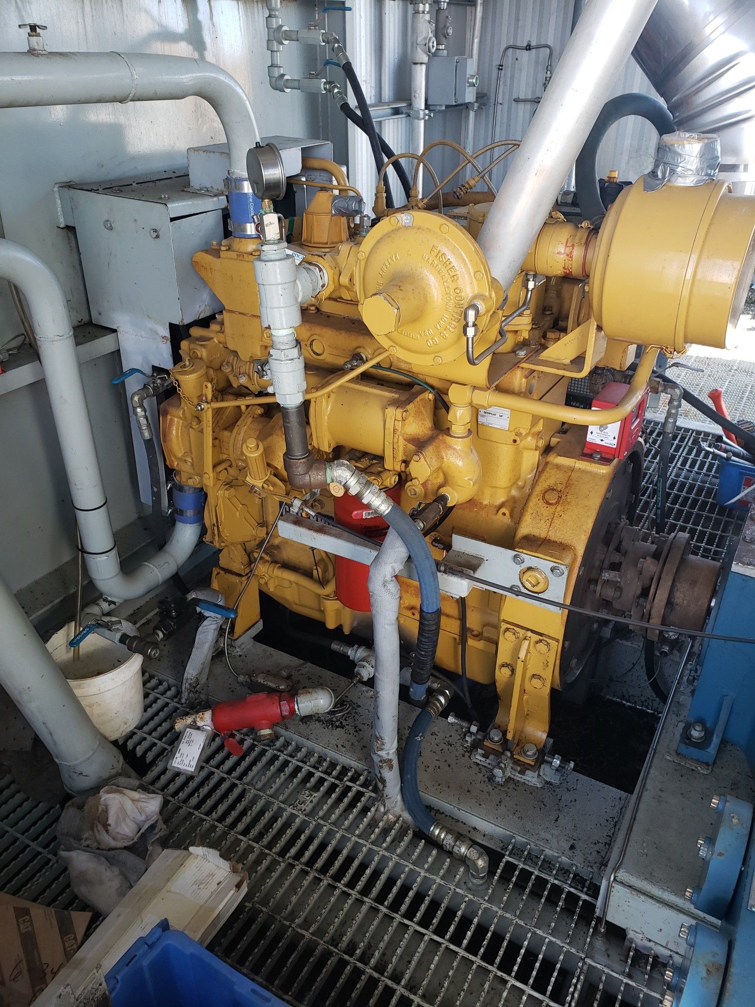 Scope of work; remove the Caterpillar 3304 (95HP) 2 Stage Reciprocating Compressor package from the previous rental location, ensure the unit is mechanically sound, and run through with all essential maintenance completed before immediate shipment.